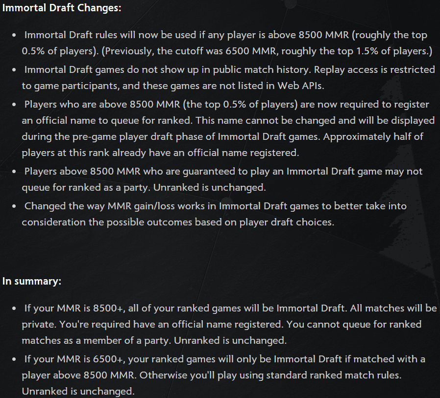 Alongside this, Immortal Draft games cannot be viewed on DotaTV, nor can the players’ match histories be viewed by anyone except the players themselves.