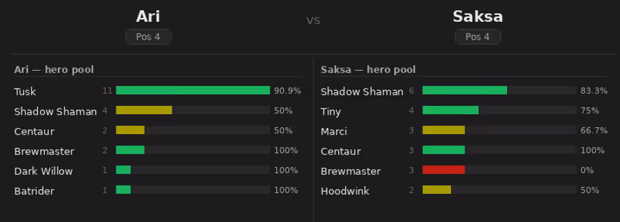 They heavily prioritised Tusk and Phoenix, two heroes known for being lane bullies. Matthew "Whitemon" Filemon sits at a perfect 100% win rate on Phoenix with 7 games played on the hero, while Ari lifted the trophy on the BP Pulse arena stage with 10 wins out of 11 games played on Tusk.