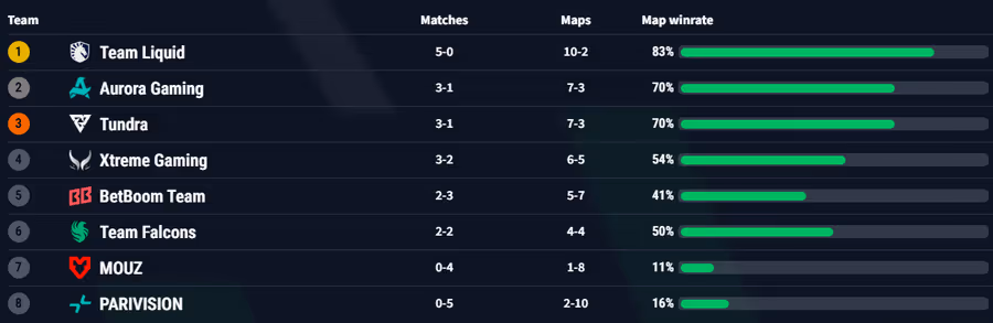Although they are technically eliminated from the tournament, PARIVISION still have two more series to play in the single round-robin format of Group Stage 2. That means they can easily disrupt other teams competing for playoff spots. Their next two adversaries are MOUZ, who are also at the bottom of the group on Day 5, and Falcons, who are going through a bit of a rough patch after Ammar "ATF" Al-Assaf developed an eye infection and had to step down on Day 3 of the group stage. Since then, Falcons have used two stand-ins and are currently on a 2-2 series score in the bottom half of the group.