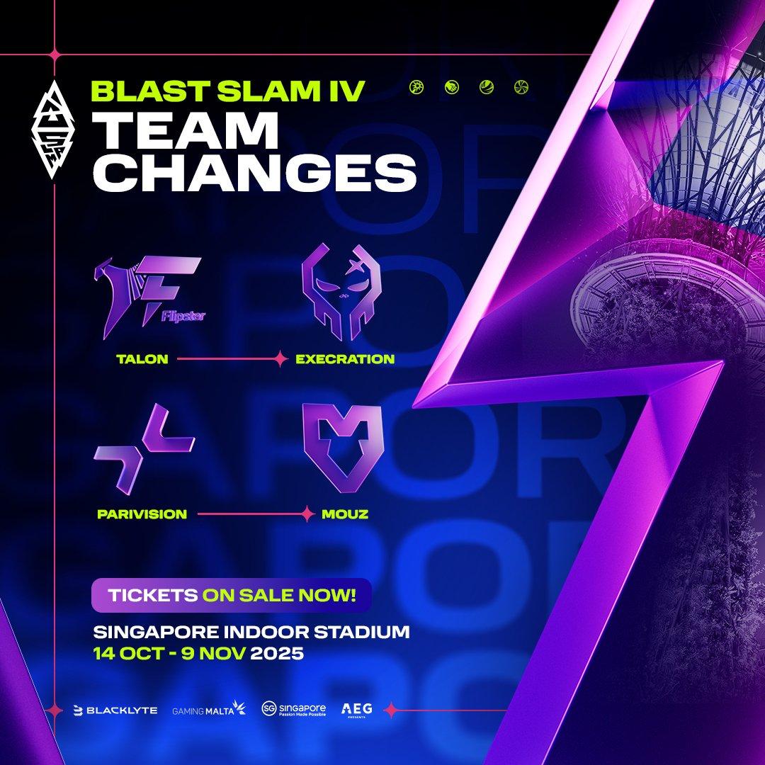 El Slam IV, que será el primer evento de BLAST con público en directo, se celebrará en Singapur. En ese sentido, Talon Esports fue elegida originalmente como la "región anfitriona" de invitación directa. Sin embargo, debido a los importantes problemas de plantilla de las últimas semanas, Talon seguía sin tener un equipo completo a 8 de octubre. Por este motivo, el equipo ha decidido retirarse de BLAST Slam IV, dejando que los organizadores ocupen su lugar con Execration.