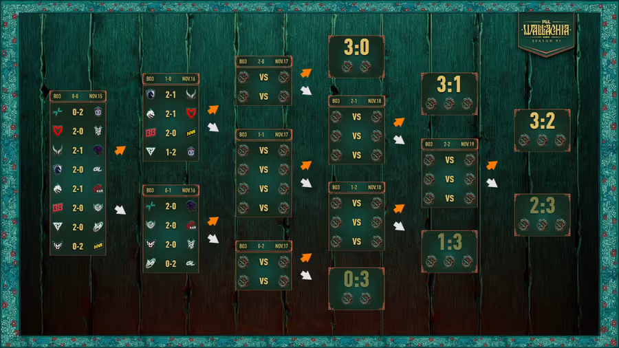 Сезон 6 PGL Wallachia стартовал в субботу, 15 ноября, и собрал 16 команд в Бухаресте, Румыния, где они соревнуются с PGL Studios за львиную долю призового фонда в $1,000,000. Модифицированный групповой этап по швейцарской системе означал, что все шестнадцать команд уже провели по две полные серии, приближаясь к решающим матчам, которые либо отправят их на родину, либо продвинут в плей-офф.