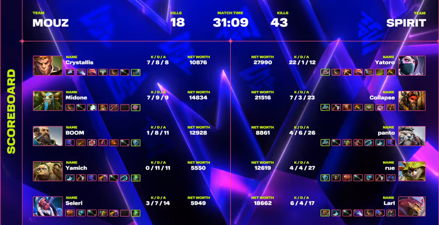 Когда на кону стояли турнирные жизни, мы увидели крайне хаотичную финальную игру. Если в предыдущих матчах MOUZ уступили середину игры, то в этот раз они полностью контролировали ситуацию. Хотя мы увидели несколько великолепных розыгрышей от Магомеда "Collapse" Халилова и Никиты "Panto" Балаганина, чтобы удержать Spirit в игре, этого было недостаточно.